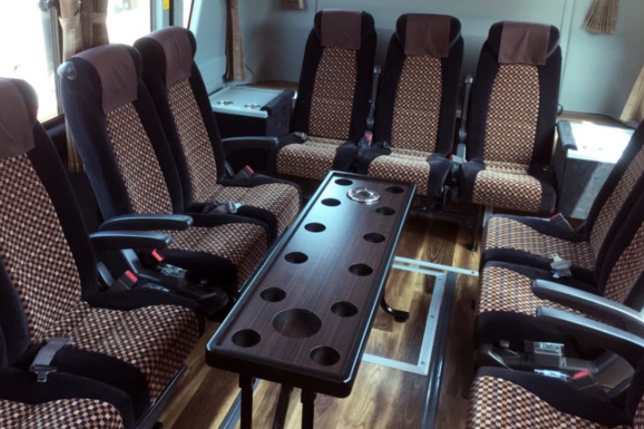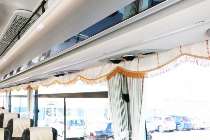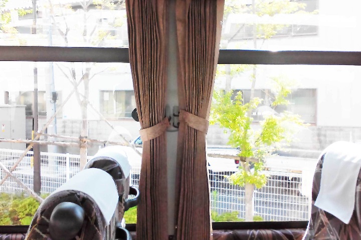 車窓の眺めも車高の高いバスの醍醐味。折り目加工(プリーツ加工)でお客様の眺めも車内空間もすっきりします。