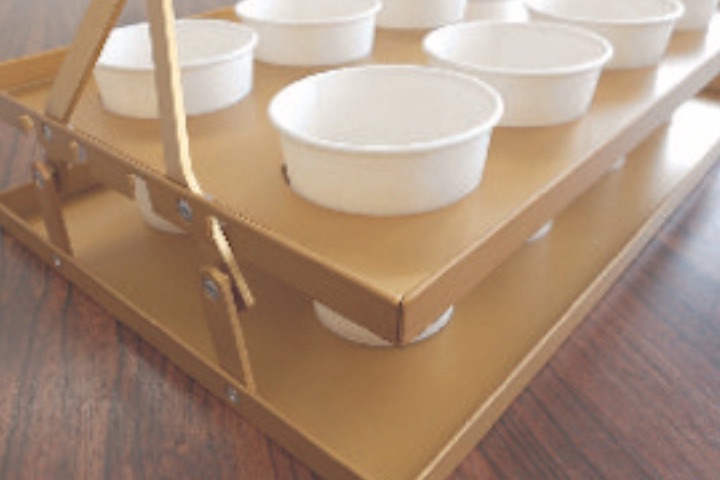 車内サービスとして、コーヒー、お茶などを配る時に大活躍。収納時は折りたたんでコンパクトに。貸切バスの必須アイテムです。